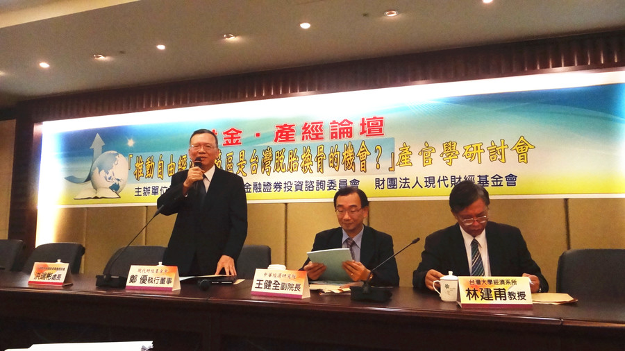 台綜院研究員戴肇洋則認為,上海自由貿易試驗區從7月批准,10月1日正式上路,天津、廣東、廈門也陸續規劃自貿區中,相較之下台灣如今政治紛亂,推動立法曠日廢時,第二階段法案的通過恐怕遙遙無期。而關於上海自貿區對台灣自經區的影響,在金融服務方面,中華經濟研究院副院長王健全持樂觀看法,互補合作、各取所需的雙贏局面值得期待。