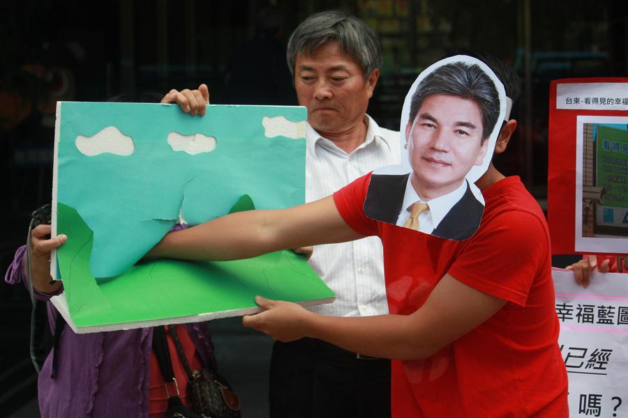 環保團體以行動劇表達對內政部長李鴻源的不滿,以及對《全國區域計畫法草案》