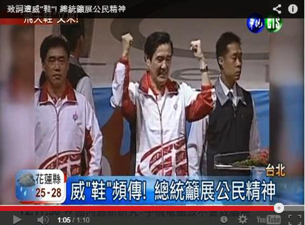 實在是很難看、不敬的場景!馬總統最近出席公開場合時,總是有抗議民眾如影隨形,不但大聲喊叫干擾會場,也設法向馬總統擲鞋,製造總統的難堪。