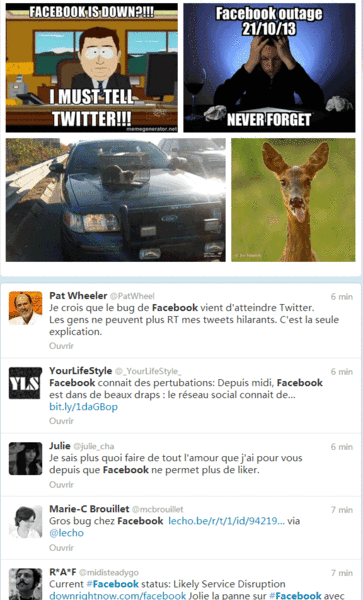 臉書故障,大量的用戶在推特即時更新狀態回報災情(photo by 推特截圖)