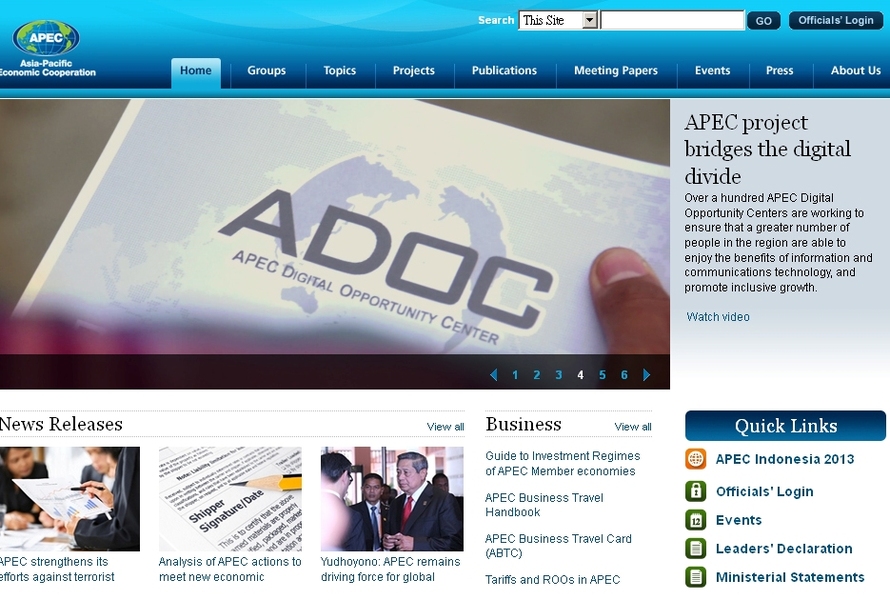 台灣在2003年APEC經濟領袖會議中提倡「APEC數位機會中心」(ADOC)計畫,希望能縮減該區域內的弱勢團體(如婦女、小孩)的數位落差,並加強中小企業的數位應用能力。該計畫從2004年起,在10個APEC合作會員體(秘魯、智利、泰國、越南、印尼、菲律賓、巴紐、墨西哥、馬來西亞、俄羅斯)成立101個數位中心,培訓逾50萬人。