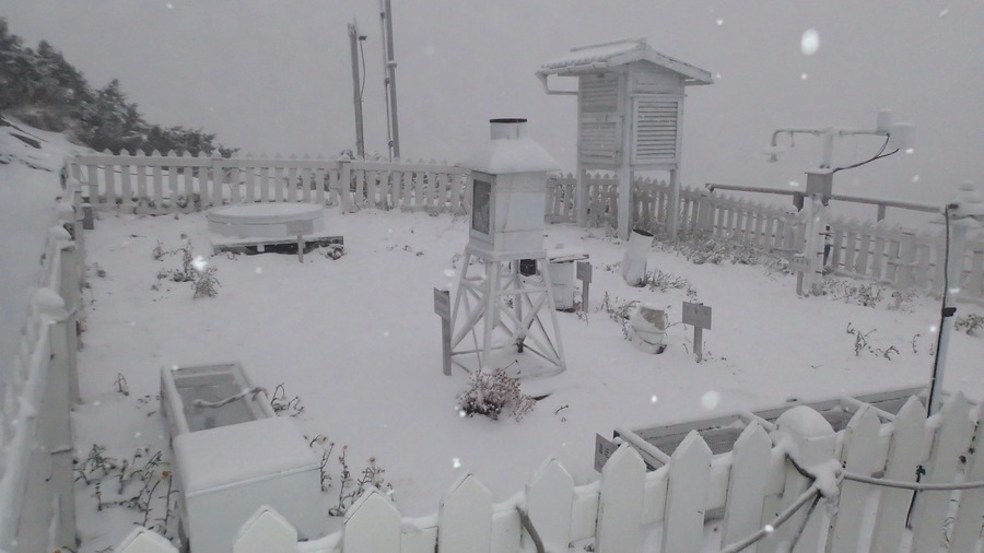 玉山今(22日)早7點30分再度飄雪,目前仍繼續下雪,氣象局統計截至10為止已積雪6公分。氣象局預報員蔡耀德表示,華南雲系通過台灣帶來豐富水氣,加上玉山溫度在零下1度左右,達到降雪條件,白天仍有機會陸續降雪。
