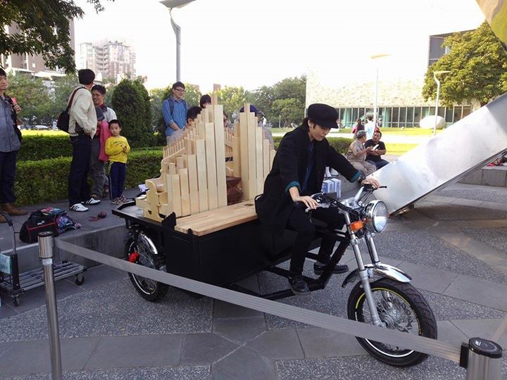 去年獲補助的團隊「噪咖事務所」提出了「ORGAN BIKE機械管風琴巡遊計畫」,作品演出的形式與靈感來自於冰淇淋三輪車,結合平時鮮少看到,只存在於西方教堂、表演廳的管風琴,並搬到戶外空間。透過電動三輪車的乘載,到各地巡遊,成為一個移動式的表演車。