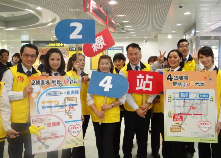 配合台北的跨年晚會,台北捷運自12月31日早6點起到1日晚上12點連續營運不收班,通車42小時不打烊。台北捷運公司說,過去跨年,板南線每小時運輸4萬3千人次,增加了信義線後,預估最大運量達每小時7萬3千人,運輸效能大大提升後,預計1月1日可在凌晨3點前完成人潮疏散。