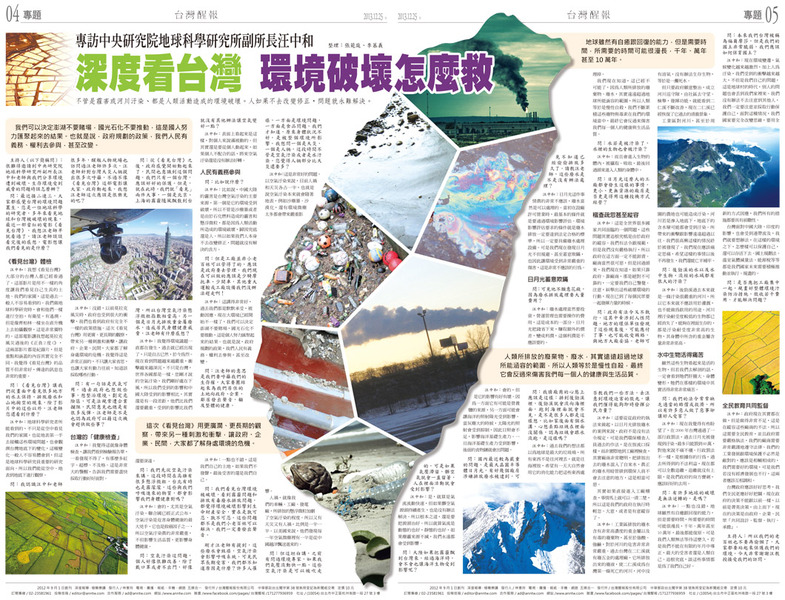 主持人(以下簡稱問):很難得邀請到中央研究院地球科學研究所副所長汪中和老師與我們分享環境遭到破壞、生存環境受到威脅的問題時該怎麼辦?
