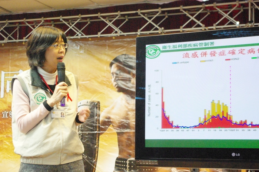 疫情中心主任劉定萍表示,上周疑似流感的急診及門診病例都較前一周上升,其中有13例H3N2、5例H1N1,以及2例B型流感確診,是入秋以來單周新高;「流感疫情會持續蔓延,預估在農曆春節會達到高峰。」劉定萍指出,近來公共場所活動及人潮眾多,民眾須特別注意衛生,若有打噴嚏或咳嗽症狀一定要戴口罩,甚至待在家中休養避免外出。