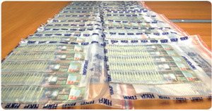 去年12月23日始截至1月5日止,港府本地陸續檢獲2003年版的1,000元偽鈔100張,其中中銀有56張、匯豐44張,不排除渣打也有假金牛混入。偽鈔風波擴及至澳門,截至2日止,澳門當地檢獲152張假金牛,其中中銀124張、匯豐28張。因1,000元是港幣最大面額、顏色近似金色,俗稱「大金牛」。