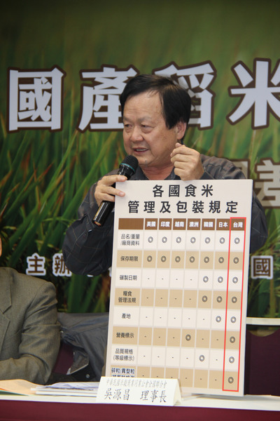 中華民國米穀商業同業公會理事長吳源昌表示,現行國家標準(CNS)分等制度過嚴,白米規格檢驗標準過於繁雜瑣碎,業者難以完全配合。他說,國際標準較寬鬆,縱如稻米大國日本,也僅在包裝上標示製造日期、碾製日期、產地和製造廠商等項目,台灣卻須標示碎粒、異型粒和白堊質粒檢測結果。