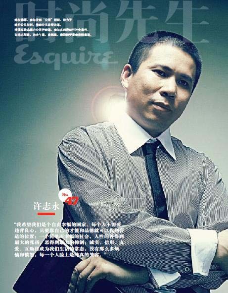 41歲的許志永是北京大學法學博士,從10年前開始投身維權運動,他所發起的「新公民運動」提倡公民以理性、非暴力的方式維護自己的權益,並以「自由,公義,愛」為主旨舉辦一系列活動,該組織以孫中山手書的「公民」二字為標識。新公民運動在中國大陸各地提倡教育平權、公民守望、公民同城聚餐,並要求政府官員公布財產,希望能將中國的「臣民社會」推向「公民社會」。