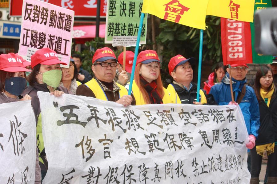 「被逼到忍無可忍的時候,狗急也會跳牆!」新竹縣勞動總工會副主席王娟萍指出,派遣勞工在傳統製造業、營造業、公家機關、保全業特別常見,即使雇主給予好的待遇也很容易被派遣單位剝削,再扣掉勞健保,1個月的薪水不到22K。勞工團體希望政府能夠直接禁止派遣制度,讓他們成為正式雇員,讓薪資與工作安全都有保障。