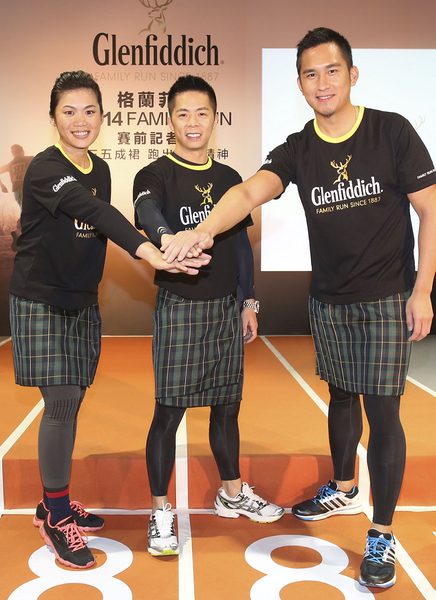 【台灣醒報記者陳正健台北報導】跑友們三五成「裙」,一同來路跑!由蘇格蘭酒商主辦的「格蘭菲迪2014 Family Run」,預計於4月12日在台北市大佳河濱開跑,為了讓參賽者體驗蘇格蘭風情,特別發想出「穿裙路跑」的創意構想,13日邀請林義傑、吳念平和莊佳容等運動好手一同共襄盛舉。莊佳容幽默地表示,很期待他們兩個穿裙子的樣子,畫面一定很有趣。