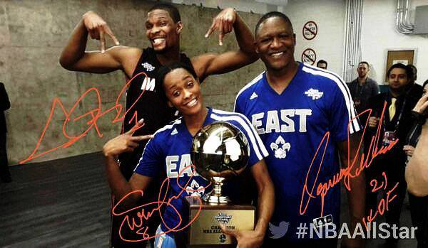由雷霆「雷帝」杜蘭特、搭配老「郵差」卡爾.馬龍和WNBA女將迪金斯組成的西區二隊則是贏家大熱門,手感發燙的杜蘭特很快就投進半場三分球,助西區二隊以1分鐘的時間完成投籃。