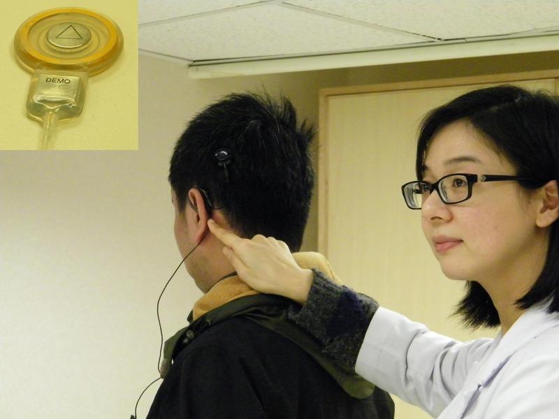 方德詠去年收治1名狀況較特殊的李姓患者,在出生時聽力正常,5歲時頭部受撞擊後聽力受損,必須長期配戴傳統助聽器;現年35歲的李先生在2年前發現助聽器逐漸失效,求診後才發現他患有一種稱作「前庭導水管擴大症」的聽覺構造先天異常。