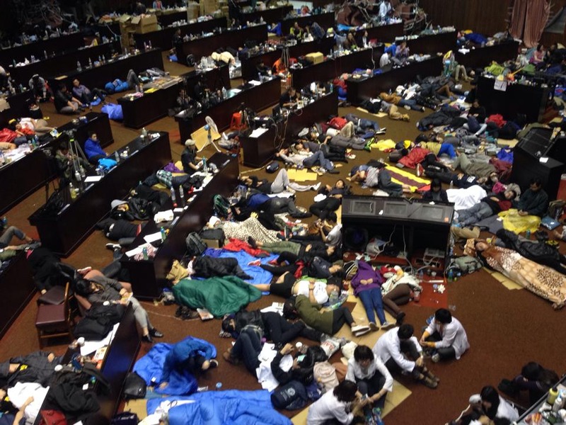 柯一正更是每晚都透過臉書更新議場內的最新動態,看到學生們蓋著睡袋、外套,瑟縮在議場內休息,他有感而發寫道,「一個個不同姿勢的蠶蛹/才正要開始展翅前的掙扎…所有出路被封上羅網/明天從蛹中探出頭來/世界改變了嗎/他們承擔了2千萬人的重量。」