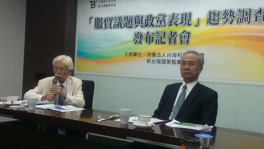 新台灣國策智庫2日發布「服貿議題與政黨表現」趨勢調查,以近日服貿爭議為題,針對20歲以上民眾進行2次調查,訪問時間分別為3月13日至15日及3月29日至30日,有效樣本約為1070件上下。母體樣本部分,泛藍、泛綠比例分佔35%及40.8%,另有20.6%表示政黨中立。