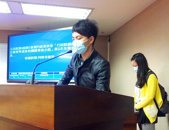 【台灣醒報記者方家敏台北報導】政院驅離行動,受暴學生再度現身說法。立法院內政委員會10日舉辦「行政院鎮壓反服貿學運真相調閱專案小組」,醫師史書華指出,當晚警方多有阻擋醫療人員救護;台大研究生范慎芸遭抬離踹打,德明技術學院學生林志傑甚至被打到頸椎受傷。但警政署基於偵查不公開原則,並沒有提供完整調查資料,署長王卓鈞僅向周倪安道歉,其餘案件則表示需再調查。