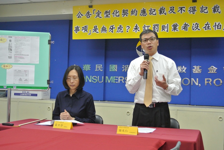 謝天仁指出,消費者在簽契約時,可至消基會網站的「消保牧場」查詢業者的信用紀錄,或上「行政院消保處」網站,了解主官機關公關的73項定型化契約應記載及不得記載事項。
