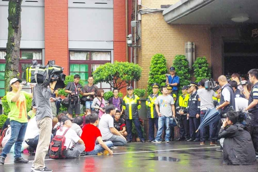 來自全台的大學學生團體在立法院門口抗議,反對服貿趕場公聽會。(photo by張瀞文/台灣醒報)