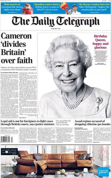 卡麥隆上週復活節投書《教堂時報》表示,他無意讓國內其他宗教信徒失望,但英國不應保持宗教上的中立,否則會剝奪固有的重要傳統。他說,信仰讓他感受到治癒的力量。