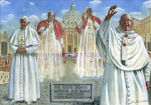 梵蒂岡27日舉行天主教史無前例的盛事,由現任教宗方濟為已故前教宗若望二十三世,與若望保祿二世舉行「封聖大典」,晉封他們為聖人,而去年卸任的教宗本篤十六世也將出席。這場儀式被義大利媒體譽為世界盛會,超過百萬的天主教徒聚集在羅馬,只求一睹教宗封聖的歷史性時刻。