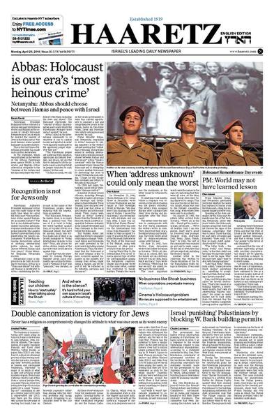 4月27日是以色列二戰猶太人大屠殺紀念日,在這個特別的時刻,巴勒斯坦自治政府主席阿巴斯發表聲明,譴責這項暴行是近代史上最可憎的反人類罪行,他是史上首位在此議題上向以國公開釋出善意的巴勒斯坦領導人。