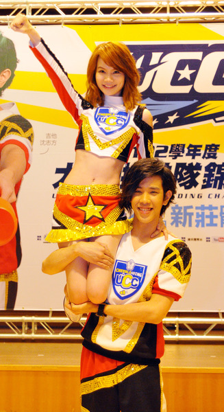 充滿朝氣、身材嬌小的利得彙,被啦啦隊員們拋上拋下,秀出許多高難度動作。她說,這次是她第一次參加啦啦隊演出,大學時的學長姊曾告訴她「妳這種身材,就是拿來拋的」。