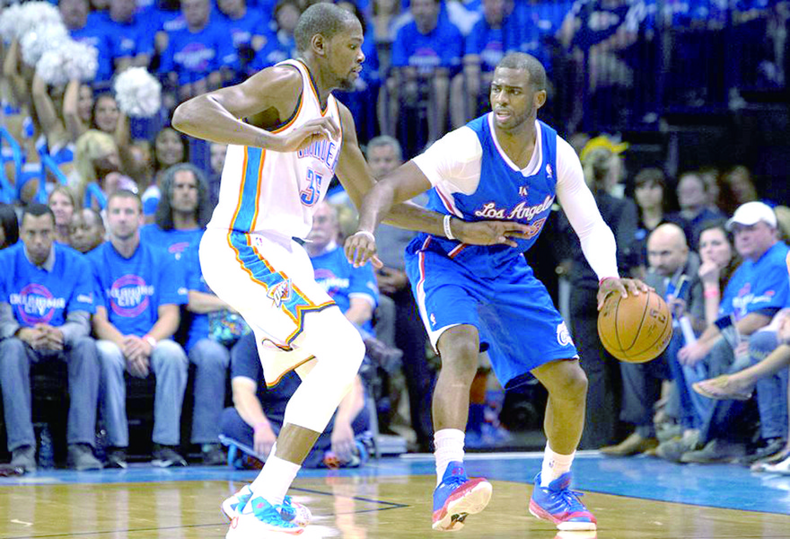 兩支在第一輪血戰七場晉級的球隊雷霆和快艇,在休息一天之後就開始第二輪的比賽。然而主場的雷霆並沒有把握好主場優勢,讓快艇眾將投出手感,第一節就射進8計三分,早早將比分拉開兩位數。整場比賽「雷帝」杜蘭特表現不佳,在場勝負值是全隊最低的-26分。反觀保羅前8次三分球出手都命中,打破前火箭球員霍瑞的季後賽三分球開賽7中7的記錄,快艇也一路順風,以122-105大勝雷霆。