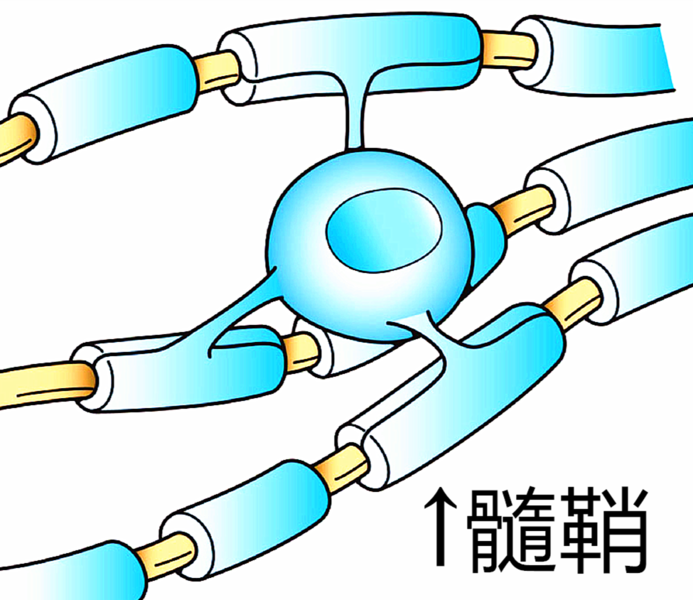 神經細胞通常擁有許多呈樹枝狀的纖維分支,這些神經纖維外層會被一層「髓鞘細胞」以類似電纜包覆電線的方式包裹;髓鞘對神經細胞間訊號的傳遞至關重要,若髓鞘受損,神經傳導將出現延遲甚至中斷的現象。