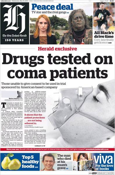 根據調查,全紐西蘭過去有近4千名重症或無意識狀態的患者,在未取得其同意的狀況下被登記在醫院的抗生素臨床投藥測試名單中。最新的案例出現在奧克蘭和基督城的醫院中,針對20名患有肺炎的病患,在其無意識、施打鎮靜劑或喉嚨插管的狀態下注射,縱使抗生素實驗的風險不高,仍讓患者陷入醫師主導的醫病關係中。