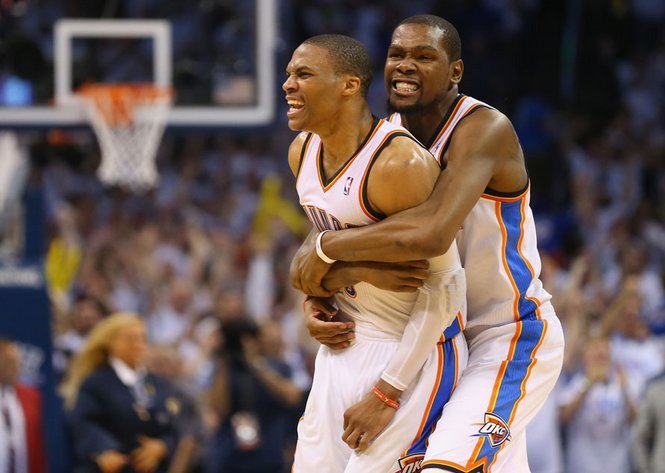 前四戰與雷霆打成2:2平手的快艇,在關鍵的第五戰一開賽就打出一波9-0的攻勢,展現必勝的決心。反觀雷霆主將杜蘭特在快艇「嚴加伺候」的情況下一直找不到手感,只靠威斯布魯克一人和快艇抗衡,第一節只能以25-34落後9分。第二節雖然杜蘭特仍未起色,但雷霆其他球員表現出色助隊縮小比分,然而瑞迪克在本節結束前命中精采壓哨三分球,快艇就以58-52結束上半場。