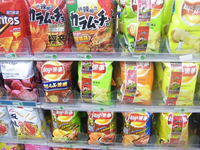 其中又以洋芋片最為「膨風」,大量填充空氣,但實際份量僅為外觀包裝的1/2甚至僅有1/3。另外,孔雀捲心餅內包裝中間塑膠格大,讓下層餅乾比上層少一根;義美牛奶法蘭酥利用梯形塑膠盒,讓餅乾橫躺,使商品看起來更多,實際不多;橘平屋味付海苔桶則運用紙盒幫商品穿「高根鞋」,增加外觀的「充實感」。