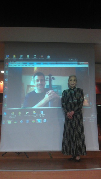 21日上午,柏林愛樂大提琴首席路德維希特地遠從德國與記者會現場視訊連線,廖瓊枝也與路德維希來了一場跨界對談。