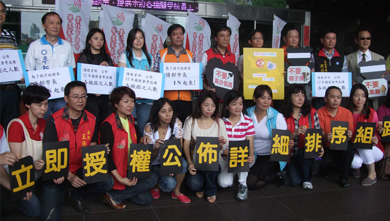 【台灣醒報記者范捷茵台北報導】志願選填倒數12天,基北區卻還沒確定是否公布會考成績組距!基北區高中職、國中家長25日在台北市政府前委屈表示,高雄市已經決定公布該區考生成績排序組距,基北區卻還在痴痴等授權;希望教育部體諒學生屬會考第一屆,能讓地方政府公布詳細積分人數,讓想「就近入學」、「免試升學」的學生有選填依據。
