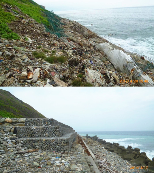 環保團體指出,20年前全台都有嚴重垃圾問題,很多靠海的鄉鎮都把垃圾丟在人煙較少的海邊。當垃圾太多,就在上面覆土蓋成綠地公園。然而靠海的掩埋場年代一久,就會因颱風或海浪侵蝕導致大量垃圾流入海中。例如基隆的潮境公園、花蓮環保公園都是如此。新竹縣新豐鄉的海岸線也因為在新豐掩埋場旁,遭不肖業者傾倒爐渣等廢棄物,經多年海岸線到退後廢棄物流入海中。