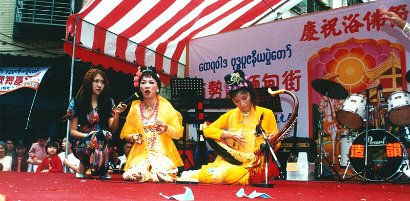 「節慶時的音樂表演,最能反映反動鄉愁的現象,」呂心純解釋,緬華在緬甸時儘管飲食、信仰都早與該國人民殊無二致,只是當年唱的是華語流行歌曲,抵台後反而開始學習過去他們較不重視的緬甸樂舞,更在1998年首次舉辦緬甸潑水節後,讓緬華社區成為中和、南勢角一帶的特色之一。
