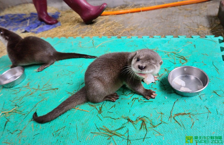 台北市立動物園表示,水獺小兄弟就一點也不浪費食物,總是會將獸醫準備的魚肉、朱文錦和泥鰍混餐吃光光,因此體重已分別增加至1605和1430公克,他們不論在游泳或捕魚等技巧,都能有效率的完成動作,表現不分軒輊。