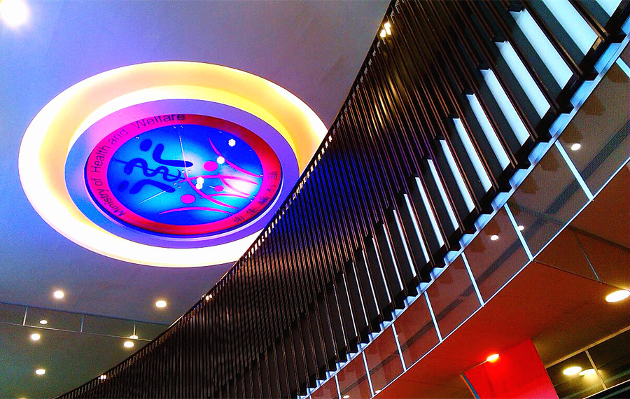 說也奇怪,衛福部是我在跑的,但胤廣、義中都去過新大樓了,我連記者室在哪裡都還要問人,今天終於體會到胤廣說新大樓很氣派的感覺,環形的大廳也蠻漂亮的,就是天花板上巨大的衛福部logo有點古怪,有種娛樂場所的氣氛。