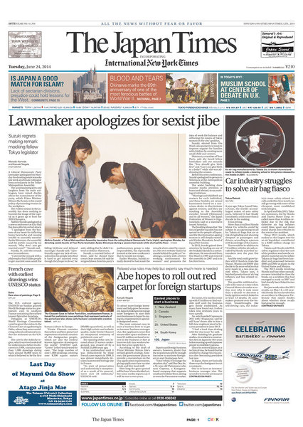 http://www.japantimes.co.jp/news/2014/06/23/national/tokyo-assemblyman-suzuki-admits-heckling-lawmaker-with-sexist-remarks/#.U6kI2pSSyYE