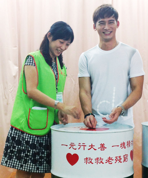 溫昇豪出席創世基金會的功德筒造勢活動,鼓勵民眾順手捐款同時,以反思自己的人生。(photo by 張芮瑜 台灣醒報)