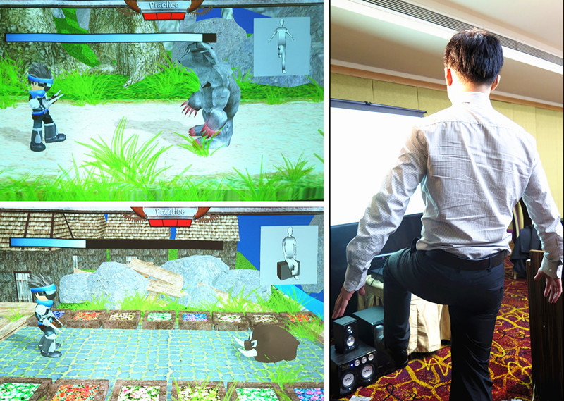 【台灣醒報記者李昀澔台北報導】透過體感遊戲科技,中風患者或發展遲緩兒童在家就能做復健。為改善復健過程單調的問題,台大雲林分院、明道大學及雲科大合作,由醫師及治療師擬定復健動作、明道團隊設計遊戲,並運用最流行的體感偵測系統,開發出角色扮演類的體感電玩。玩家必須在指定的時間內,確實做出起立坐下、坐姿抬腳、金雞獨立、左右橫移等動作,才能打敗怪獸「破關」。