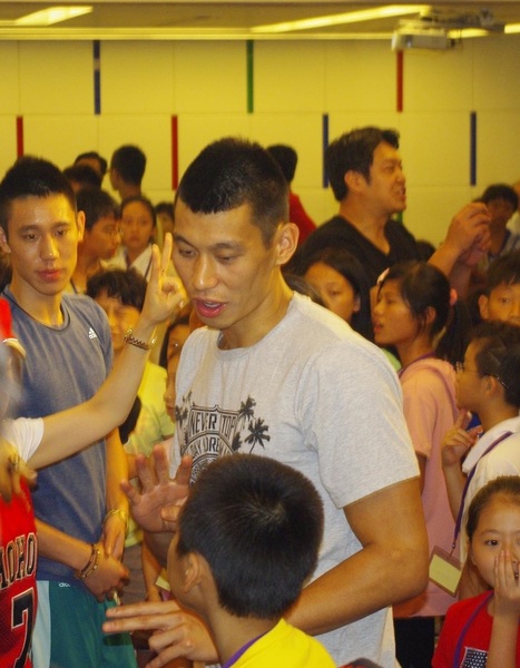 林書豪抵台第2天,行程依舊滿檔, 19日下午特地以「台灣移民之子」的身分,出席台北基督之家舉辦的「關懷新住民-愛的行動」,與新住民孩子面對面、玩團康遊戲,並分享他的成長經驗。