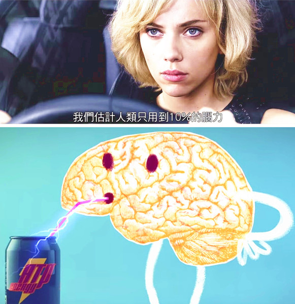 「人類只用到10%的腦力,若能提升至100%,將是多麼有趣?」老牌男星摩根費里曼在《露西》預告中,再次提到了廣為流傳的「10%理論」。而由美國女星史嘉蕾喬韓森飾演的女主角,因某種實驗性藥物滲入體內,竟可使用28%的腦神經細胞,不但能任意改變眼珠顏色、瞳孔大小、髮型、髮色,甚至擁有飛簷走壁、暫停時間、用意志力「移山倒海」等特異功能。