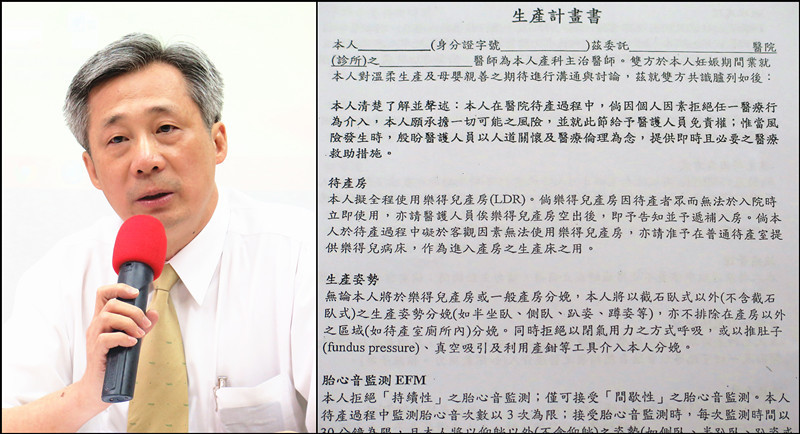 衛福部日前行文婦產科醫學會,要求醫界參照民團所提出的生產計畫書,內容包括產婦希望的產房種類、生產姿勢、內診、破水、催生、減痛等處理方式。周產期醫學會理事長蔡明松24日表示,懷孕至生產過程中變數極多,不應過度干涉醫師臨場判斷,若有突發狀況,不可能完全照計畫書執行。