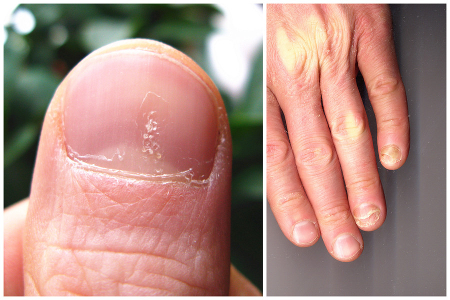 【台灣醒報記者李昀澔台北報導】乾癬也可能出現在指甲上!台大皮膚部主治醫師蔡呈芳7日出席衛教活動時指出,約有半數乾癬患者會出現指甲凹陷、斷裂、變色、剝離等症狀,常被誤認為「灰指甲」。長庚皮膚科主治醫師黃毓惠分析,灰指甲是黴菌感染,指甲會明顯增厚,乾癬則會變黃、出現小凹洞,兩者治療方式不同,需由醫師判斷。