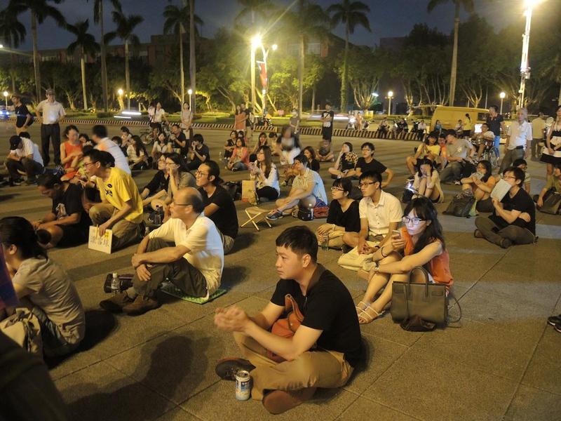 【台灣醒報記者范捷茵台北報導】「五六運動變成一種很特別的生態,有人自發上台講、有人在台下聽,一切都是自然而然的發生。」8日晚間6時和過去73個週五晚上一樣,自由廣場前聚集了數百人席地而坐,肥皂箱前方架設同步連線的攝影機,聚光在公民團體的演講,現場不只談核四,也講高雄氣爆、古蹟拆遷,人群中有志工拿著不同連署書解釋訴求,一旁還有書商賣書,儼然成為自由廣場的週五新氣象。