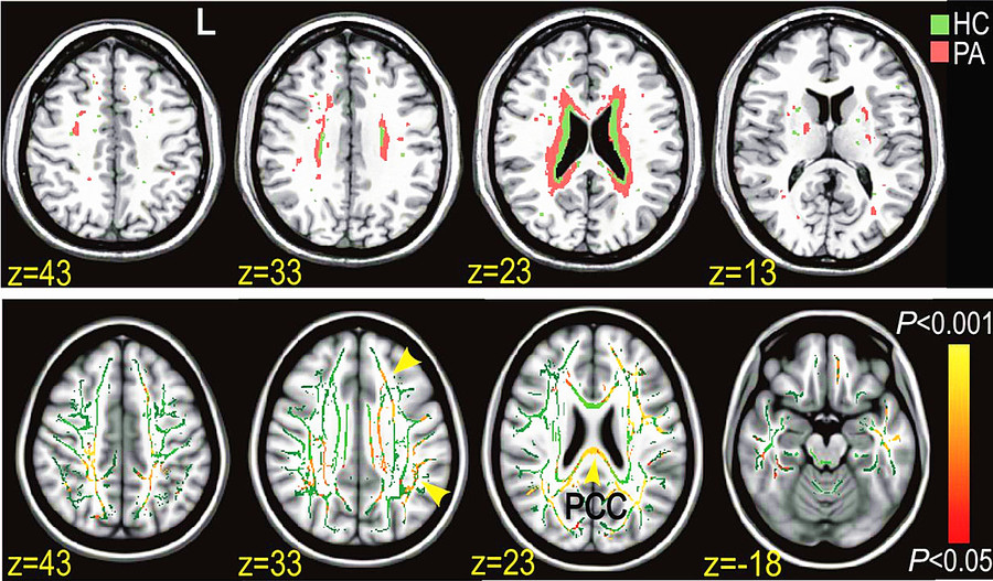 榮陽團隊發表於《腦中風》、《公共科學圖書館》及《神經外科》等期刊的研究,透過「功能性磁振造影」及「擴散張量磁振造影」等技術發現,血管性認知功能障礙的病因與阿茲海默症不同,也就是腦部發生病變的位置並非在俗稱「記憶中樞」的海馬迴,而是「額頂葉腦白質」部位的神經細胞連結異常。