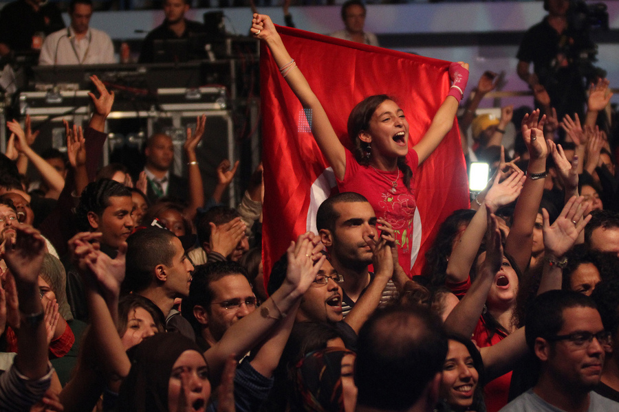 突尼西亞2011年成功使獨裁領袖班阿里下台後,開放黨禁,並首次自由選舉制憲國民大會,由復興運動取得217席中的90席,比第二大黨多2倍,並成立過渡政府。但復興運動偏伊斯蘭的立場,卻讓世俗派反對黨抗議,認為對方透過政策行使宗教意志。