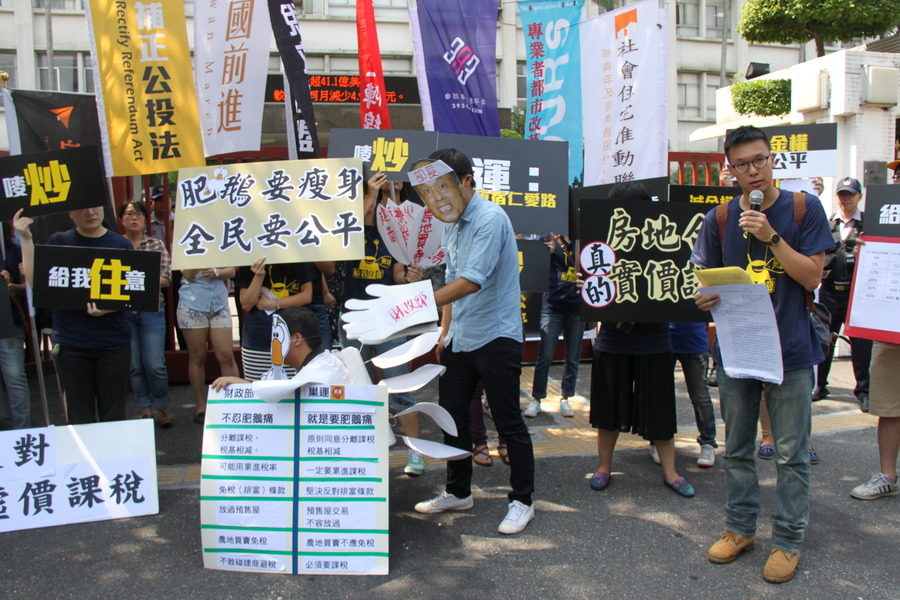 【台灣醒報記者賴義中台北報導】「稅改不忍肥鵝痛,竟專拔瘦鵝毛!」針對財政部長張盛和日前以「拔鵝毛」比喻課稅,稅改團體「巢運」11日赴財政部門前抗議,批評稅改避開資本利得課徵、預售屋、農地和建商避稅,是只「做半套」。賦稅署表示,資本利得課徵、長期持有和自用優惠,都是改革方向,財政部正研擬中。