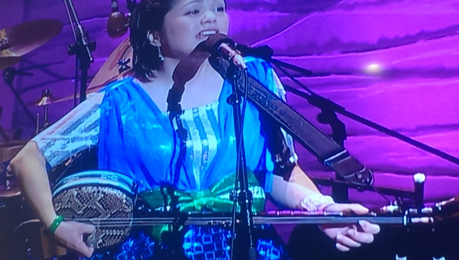 沖繩人夏川彈三線(跟三味線有點不一樣)。