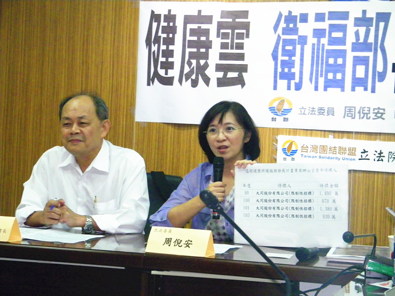 另外,去年媒體報導,行政院科技會報啟動「超級健康雲」計畫,總預算超過10億元。周倪安對著投影機上的報導指證歷歷,指稱衛福部資訊處長許明暉最近矢口否認,是否騙很大。